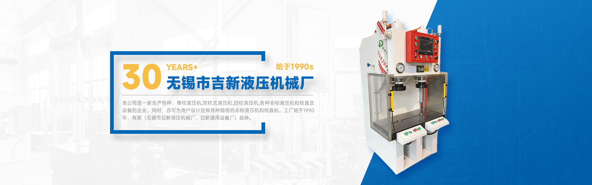 無錫市吉新液壓機(jī)械廠是一家生產(chǎn)各種:單柱液壓機(jī),雙柱式液壓機(jī),四柱液壓機(jī),各種非標(biāo)液壓機(jī)和校直及設(shè)備的企業(yè)。同時(shí),亦可為用戶設(shè)計(jì)定做各種規(guī)格的非標(biāo)液壓機(jī)和校直機(jī)。工廠始于1990年,有原(無錫市日新液壓機(jī)械廠、日新通用設(shè)備廠)延伸。本廠生產(chǎn)加工設(shè)備齊全、所生產(chǎn)的八大系列幾十種規(guī)格的液壓機(jī)及非標(biāo)液壓設(shè)備廣泛應(yīng)用于壓裝、汽車零配件、電機(jī)制造、高低壓電器(DMC、SMC)粉末冶金、廚具、薄板拉伸壓延、磁性材料制品等行業(yè)。