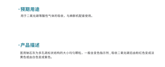 醫(yī)用鈣石灰為多孔疏松狀結(jié)構(gòu)的大小均勻顆粒,一般含變色指示劑,吸收二氧化碳后由粉紅色變成淡黃色或由白色變成紫色